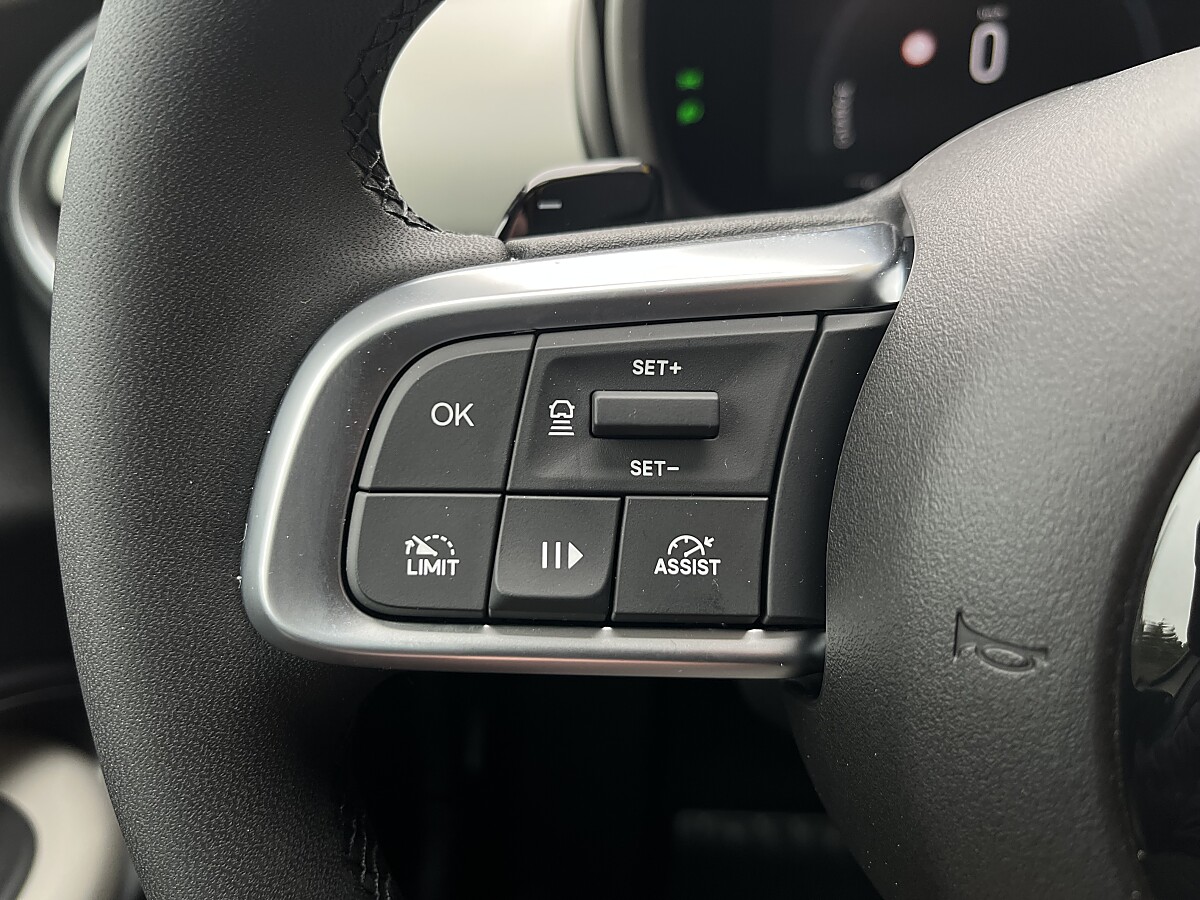 − 18“ Leichtmetallräder mit Diamant-Finish 215/55 R18 (1M5) −Außenspiegelgehäuse glanzschwarz (88Q) − LED Hauptscheinwerfer mit Tagfahrlicht in der Motorhaube (LPX) − LED Blinklichter (3U1) − LED Nebelleuchten mit Abbiegefunktion (LNT) − LED Rückleuchten (LAY) −Chrom Highlights (5IF) − La Prima Badge an der B-Säule −B Säule glanzschwarz (33G) − 10“ Infotainment inkl. On Board-Navigation, Kabelloses Apple CarPlay1& Android Auto2 , iVm. U-Connect Services (RDQ + RTK) , −7“ TFT Kombiinstrument (JAL) −USB Typ A & C-Anschlüsse vorne; Typ C in zweiter Sitzreihe (RS4) −Audiosystem mit 6 Lautsprechern (RCG) −Kabellose Smartphone-Ladestation (RFX) −Velours Fußmatten (0YB) −Smarte Mittelkonsole mit Armlehne (132) −Stoffsitze „Style“ in Schwarz/Elfenbein (212) −Höhenverstellbar Kofferraumboden (256) − Lenkrad mit hochwertigem SoftTouch-Bezug (318) −Rahmenloser, selbst dimmender Rückspiegel (410) −Winterpaket (6R7) (Sitzheizung (452), Beheizte Windschutzscheibe im Bereich der Scheibenwischer (253)) −6-fach verstellbarer Fahrersitz (JTM) −4-fach verstellbarer Beifahrersitz (JWA) −3. Kopfstütze Rückbank (511) −Türgriffe innen verchromt (5MT) −Armaturenbretteinlage Elfenbein (7Q4) −Abdeckung Mittelkonsole La Prima (B2B) −Rückbank umklappbar 60/40 (CFN) −Tasche in der Rückenlehne (CSM) −Abgedunkelte Heck-und Seitenscheiben (GEG) −Colour Therapy (LED Ambientbeleuchtung, 8 Farben zur Auswahl) (LHA) − LED Dachhimmelbeleuchtung (LN7) −6 Airbags −Verkehrszeichenerkennung (0XR) −Automatischer Fernlicht-Assistent (1H2) −Dämmerungs-und Regensensor (347) −Assistiertes Fahren Level 2: Adaptiver Tempomat mit Geschwindigkeitsbegrenzer, STOP & GO und Spurhalteassistent (412 & 9YZ) −Autonomer Notbremsassistent mit Fußgänger-und Radfahrererkennung (9S8) −Rückfahrkamera 180°-Perspektive (9YN) −Toter-Winkel-Assistent (GPB) − E-Call: Automatischer Notruf & SOSTaste (RTR) − Einparksensoren vorne, seitlich & hinten (XAH) − Elektrische Feststellbremse (XC4) −Reifenpannen-Kit Fix & Go (499) −Klimaautomatik (140) −KeylessGo (schlüsselloses Startsystem (GX4)) und KeylessEntry mit Näherungssensor (9Z0) − Elektrische Fensterheber vorne und hinten mit Express Up/Down-Funktion (3IG) − Elektrisch verstellbare, anklappbareund beheizbare Außenspiegel (GTD) −Sensorgesteuerte, elektronische Heckklappe (JK2)