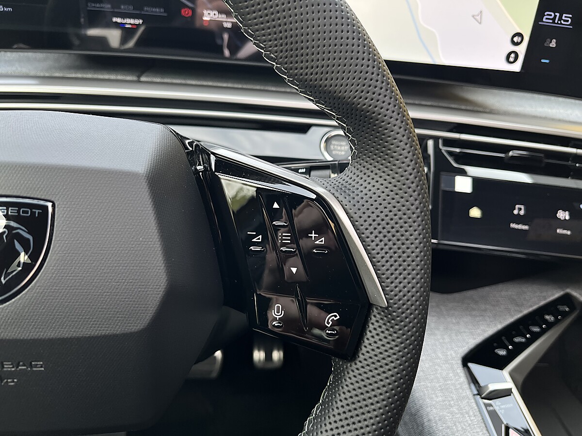 Elektrisches Panorama-Ausstell-/Schiebedach, Luftqualitätssystem „Clean Cabin“, FOCAL-Soundsystem, Akustische Verbundglas, Seitenscheiben vorne, 19″ Leichtmetallfelgen, Toterwinkelassistent, Ausparkassistent Rear Cross Traffic Alert, Antizipierte Geschwindigkeitserkennung, Spurpositionierungsassistent inkl. halbautomatischem Spurwechselassistent, Reifenpannenset, Vernetzte 3D -Navigation von TomTom, Natürliche Sprachsteuerung „OK PEUGEOT“, Heckklappe sensorgesteuert, PEUGEOT i-Cockpit Panoramic, ACC mit STOP & GO -Funktion
