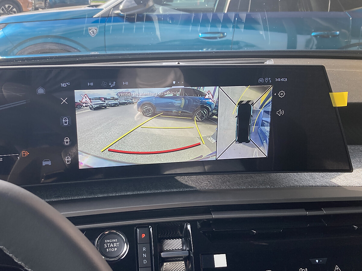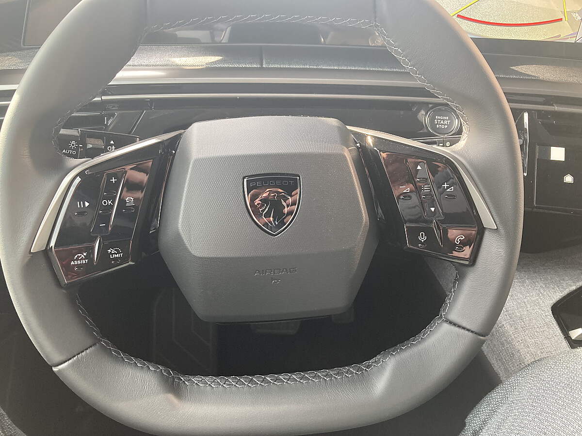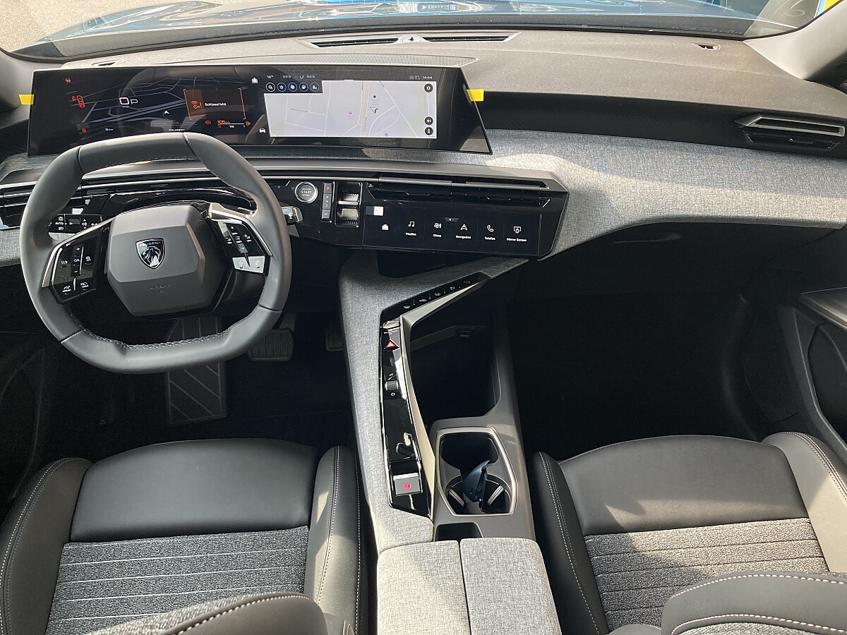 PEUGEOT i-Connect Advanced* mit 21″-HD-Curved-Panoramadisplay, Navigationssystem: Echtzeitnavigation „by TomTom Services“, Natürliche Sprachsteuerung „OK PEUGEOT“, 1 USB-Anschluss (Typ C) vorn, 2 USB-Anschlüsse (Typ C) hinten, PEUGEOT i-Toggles, Induktive Ladestation,