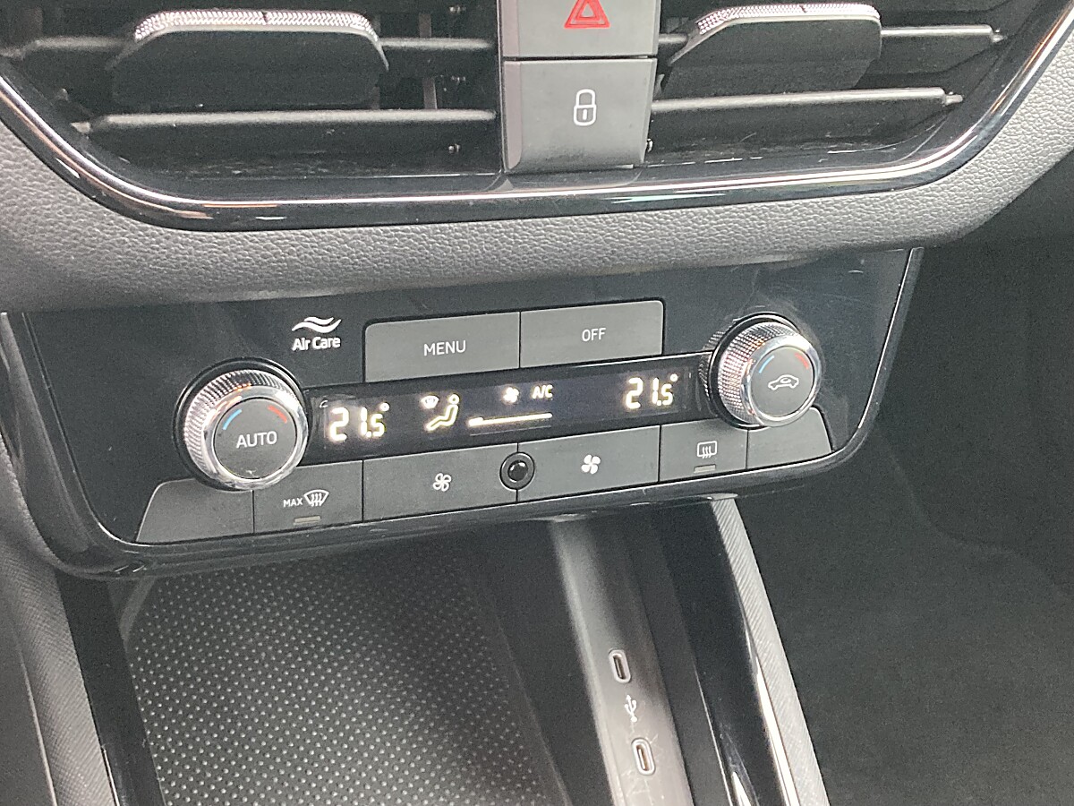 Rückfahrkamera, Kessy (Schlüsselloser Zugang), Parkpilot vorn, Spurhalte-Assistent, LED Scheinwerfer, Apple Car Play + Android Auto Kabellos, Müdigkeits-Warner, Leichtmetallfekgen 16″, Climatronic 2-Zonen, Infotaiment 8″ Radio, Frontradar-Assistent